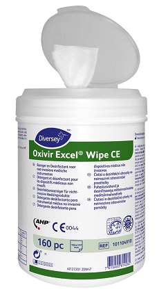 Limpiador desinfectante de eficacia de amplio espectro sy tiempos de contacto reducidos. Basada en la tecnología patentada de Diversey de Peróxido de Hidrógeno Acelerado, la formulación de Oxivir Excel Wipe puede ser usada en todo tipo de equipos y aparatos médicos no invasivos.
